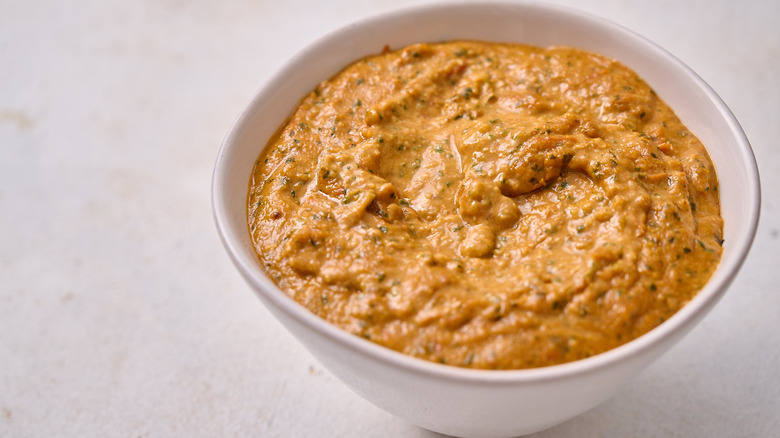 When we think of pesto, we usually imagine the classic Genovese pesto, made with olive oil, Parmesan, garlic, pine nuts, and a garden's worth of basil. This thick, bright green pesto has infinite uses beyond a plate of pasta, always adding delicious garlic and basil flavor to everything it touches. It's in itself a versatile recipe, the options of add-ins (like mint) as endless as its uses. One add-in that totally transforms a classic pesto is the star of your summer garden: Cherry tomatoes, which can be roasted and blended into a bright and creamy Sicilian pesto.