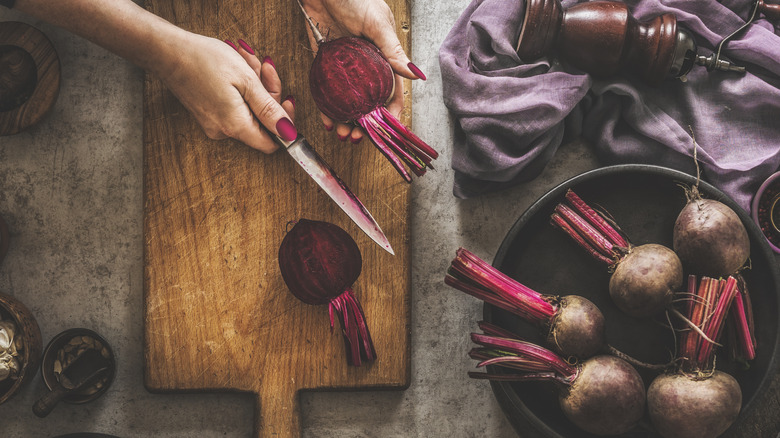After decades in the doghouse, beets earned a reprieve in the mid 2010s as the next superfood. That's because beets provide a tremendous nutrition bang for the calorie buck, with potent doses of folate, manganese, copper, and potassium. Once banished from menus as a drab and depressing root — especially in borscht form — beets began appearing on plates at fancy restaurants. This got a further boost from the quest for meat substitutes, not to mention hilarious name-checks on the popular sketch comedy show, "Portlandia," and cosplay performers on "The Masked Singer." Beets continue to ride this wave of popularity, inspiring beet-curious cooks to seek the best method for cooking them.