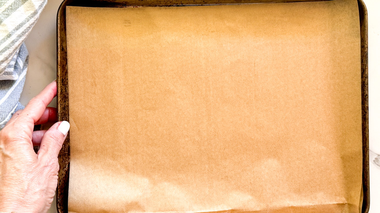 - Line a small baking sheet with parchment paper