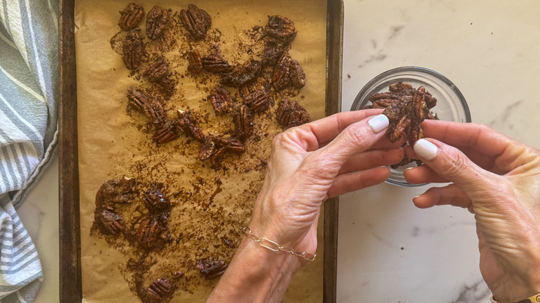 When the pecans have cooled, break them apart if some have clustered together.