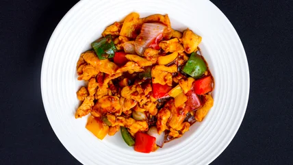 Once you've air-fried the chicken, pour the remaining sauce over it (any surplus sauce can be used to stir fry accompanying vegetables). Let whole chicken breasts rest for an additional 15 minutes to maximize flavor, moisture, and texture. This dish is traditionally served over steamed white rice, garnished with green onions. However, it would taste delicious as a salad topper. You could even use the reserved sauce as a salad dressing to toss with shredded Napa cabbage, julienned carrots, snow peas, cucumber, and radishes.