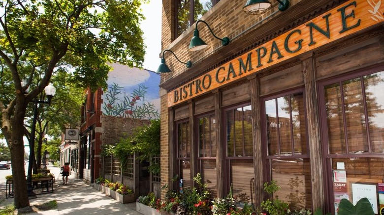 Bistro Campagne is hailed as one of the top-rated Chicago restaurants offering outdoor dining, thanks to its quaint wooden fence, lush greenery, vibrant flowers, and romantic fairy lights. It's perfect for laid-back dates with a touch of magic and color. Established in 2002, it fancies itself a friendly neighborhood restaurant in the tradition of a true French bistro. It also commits to using sustainable ingredients, according to its website.