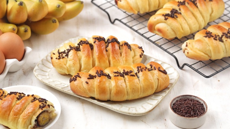 The combination of banana and chocolate is perfect for a last-minute dessert, but if you have extra time or ingredients to spare, you can always spruce up the chunky monkey croissants. Instead of using just one type of chocolate to line the bananas with, use a combination of white and dark chocolate, or go for candy bars with fillings, such as coconut or almonds. If you have leftover chocolate, melt it while the treats are in the oven to drizzle them on top once they're out. After drizzling the chocolate on top, sprinkle coconut flakes, sea salt, or chopped nuts onto the croissants.