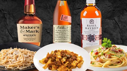 Maker's Mark is classic in every sense of the word: handcrafted in Kentucky, Maker's Mark is a no-nonsense bourbon that has essentially set the standard for quality American whiskey. "It's a wheated bourbon and a timeless classic, just like the dish," says Huerta. "The proof is perfect for the flavors of the dish to not be overpowered." It's this balance of flavor in both the pasta and the whiskey which is crucial for the pairing; something as simple as cacio e pepe needs to be supported, not outshined. Luckily, the sweet balance of oak and vanilla with a soft, creamy finish in the Maker's Mark is just what the chef ordered, acting as a complement to the peppery, cheesy pasta rather than overshadowing it entirely.