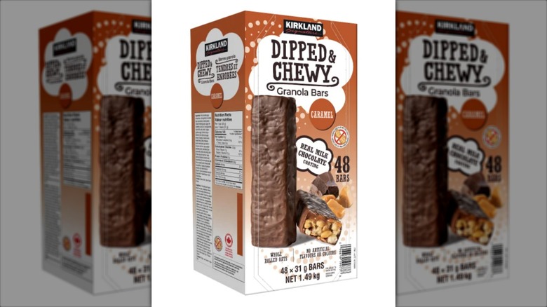 Costco, home of the $5 rotisserie chicken and absurdly-sized boxes of granola bars. Kirkland Signature offers a variety of snack bars — most featuring some form of chocolate — in packages containing anywhere from 20 to 120 bars. While it may be tempting to reach for that box with the most in it, quality over quantity comes into play here. Tasting Table's Megan Hageman tested and ranked 5 of the best snack bars at Costco and concluded that the absolute best is the Kirkland Signature Dipped & Chewy Granola Bars.