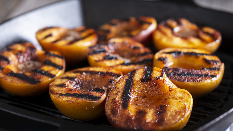 We've previously shared a number of tips you need to know when grilling fruit, but as the weather gets cold, you can achieve similar results from the comfort of your own home. Due to its natural ability to create a sear, the cast iron skillet is the ideal vessel for grilling fruit on the stove. This is especially true if your skillet has ridges, as your fall fruits will look just like they've come off the grill, with beautifully charred lines all over. This is one of the best ways to caramelize the natural sugars found in ripened fall fruits, bringing out their deep, rich flavors. For such a decadent treat, grilled fruit is also incredibly low-calorie and simple to make compared to other desserts.