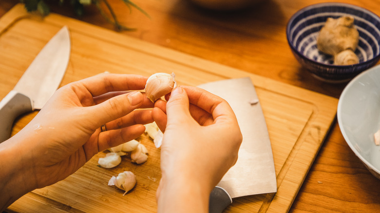 Sprinkling curls of umami-packed Parmesan over a serving of Cacio e Pepe is an awesome way to boost the savory flavor of pasta moments before serving. However, there's another trick that will elevate your meal further before you even consider placing it in your serving dish: Rubbing the bowl with a clove of garlic.