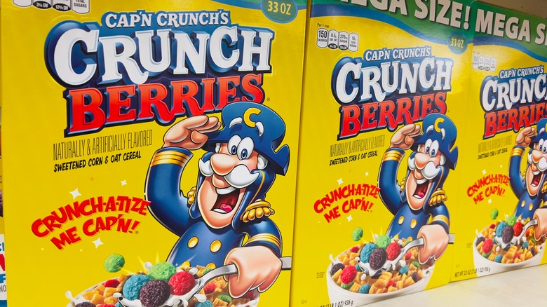 Lucky Charms are a delicious breakfast cereal and one that you shouldn't sleep on — especially if you're a fiend for marshmallows. So why not max out your marshmallow quota by using this cereal in your next Rice Krispies treat recipe? These cereal bars won't just have the soft, molten feeling of the melted marshmallows, but also the sharp, dry bite of the dehydrated ones found in the cereal mix itself.