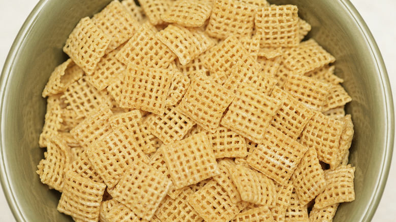If you're looking for a take on Iowa's Scotcheroo bars, combine the Chex pieces with peanut butter, sugar, vanilla, and honey in place of the mallows. Then, once the bars are cooled, they can be covered in a layer of decadent melted chocolate. This unique take on a cereal bar is well-suited for Chex because the honey and sugar will help the bars stick together, while the cereal itself offers the perfect crunch to an otherwise sticky recipe.