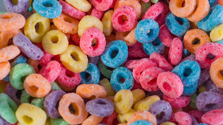 Froot Loops are also relatively soft compared to crisp rice cereal, so they give a little more of a molten bite than classic Rice Krispies (or some of the other suggestions on this list). Of course, like with the other cereal swap suggestions, you should avoid adding too many extra sweet elements to the mix, since the Fruit Loops have enough sugar on their own. In fact, if you're looking to cut this cereal with another product, it's a great opportunity to use up any leftover boxes of Cheerios.