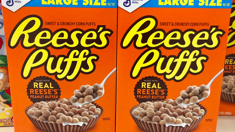 Given the "peanut butter chocolate flaaavvvaaaa" offered by Reese's Puffs (and we can all close the nostalgia chapter on that song after this slide), it's time we consider them a contender in the race for delicious — and potentially superior — cereal swaps for Rice Krispies treats. Anyone who's ever eaten this breakfast cereal knows it's not a direct analogue to the classic Reese's candy that it's inspired by, but I still have to give Reese's Puffs some credit. The bites are crunchy and hinting with peanut butter flavor, which offers the perfect accompaniment to decadently sweet marshmallows.