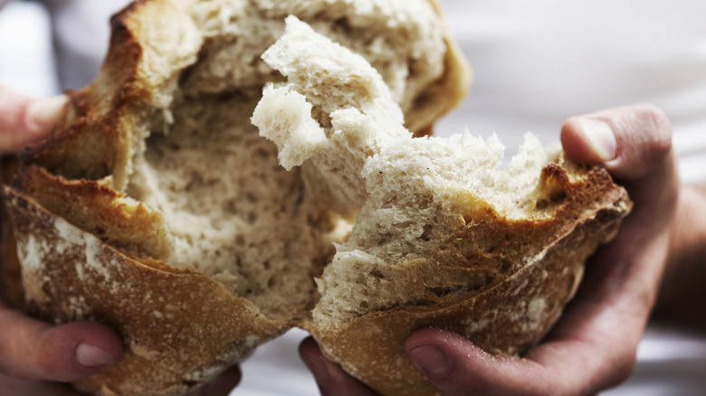 We've all been there, biting into a crouton so hard and sharp that it cuts the roof of your mouth and takes extra effort to chew. This is the opposite of what a crouton should be. Crisp, yes, but not so much that it injures you or feels like you're chewing gravel. Unfortunately, over-crisping croutons is easy to do. If you're preparing them in the oven, waiting even a minute too long to remove them can end in disaster. You can even overdo it on the stovetop if you don't stir them frequently enough. The air fryer is a slightly gentler method, but if you get the timing wrong you can overcook them there, as well.