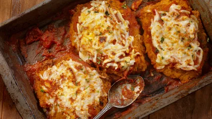 Belovedly draped over a plate of pasta, enveloped in crusty Italian bread as a sandwich, or eaten on its own, improving the classic recipe for chicken parm can seem impossible. How could one possibly upstage the tender cutlet, the crackling exterior, the sweet sauce, the blistered parm and mozzarella? We're not suggesting a reinvention of the (cheese) wheel, per se, but rather a simple step to accentuate this recipe's already stellar ingredients.