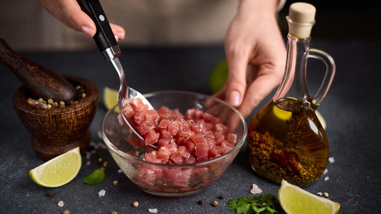 It's perhaps because of this origin (or the comparison with tataki) that tuna tartare is often associated with Asian flavors, with many recipes including soy sauce, sesame oil, and ginger. But although tuna has a robust taste, it's essentially a blank slate, and by changing the dressing and adding some extra ingredients, you can completely change the style of the dish.