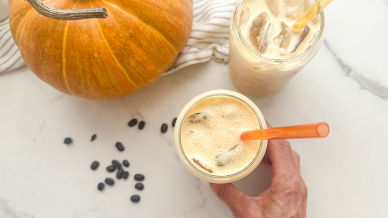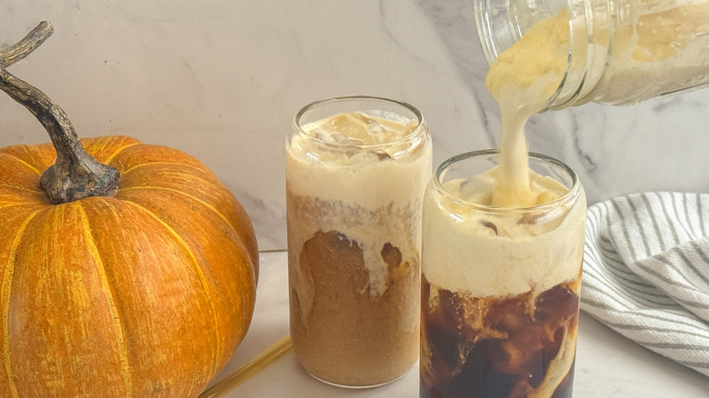 The second that summer wraps up and we sense the first hint of fall, everyone seems to have one thing in mind: pumpkin. Of course, perhaps the most notable leader in the pumpkin brigade is Starbucks, and more specifically its pumpkin spice latte. The coffee chain has expanded its variety of pumpkin beverages over the years, and nowadays the pumpkin cream cold brew is all the rage, providing that classic fall-inspired flavor without being overly sweet. If you are seeking those cozy autumn vibes, why wait in line at Starbucks when you can create a delicious pumpkin cream cold brew in your own kitchen? This recipe, brought to us by wellness coach and recipe developer Miriam Hahn, combines the boldness of cold brew coffee with sweet pumpkin, warm cinnamon, rich vanilla, earthy nutmeg, and frothed cream to bring you the flavors of fall without even leaving the house.