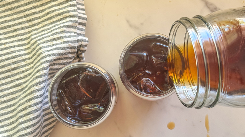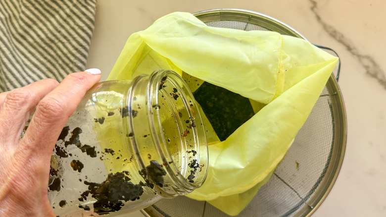 Discard the coffee grounds and transfer the strained coffee into a clean mason jar.