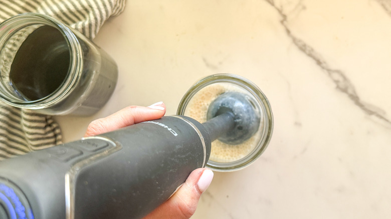 - Use an immersion blender or a handheld frother to blend well.