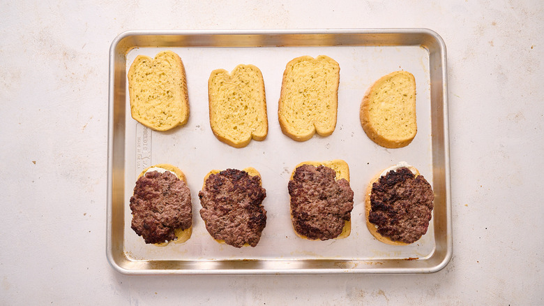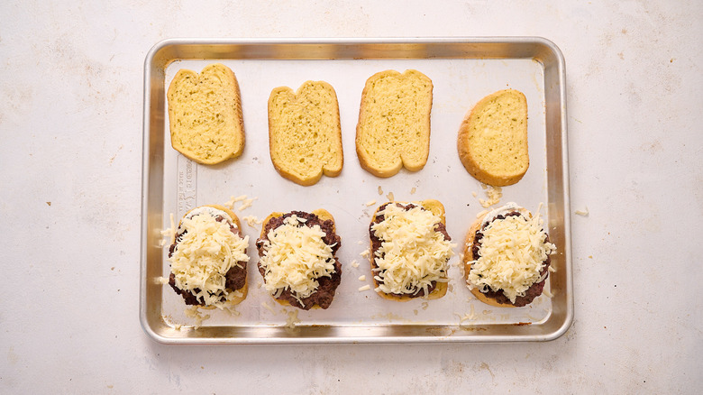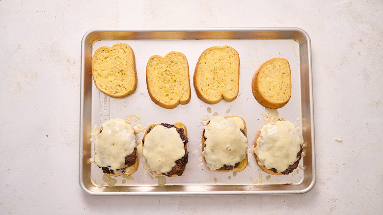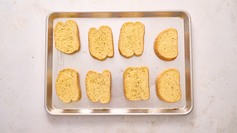 Arrange the Texas toast onto a sheet tray.