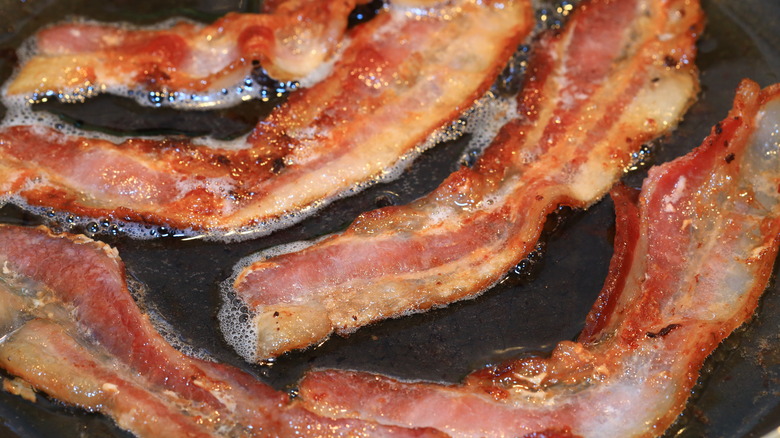 Whether you're making crispy oven-baked bacon, frying it on the stovetop, or using the sous vide method, you'll have leftover grease that's been rendered down from the high quantity of fat in the bacon. What remains in the pan is akin to liquid gold, which is why we're begging you to stop throwing out bacon grease. To extract even more fat from the streaky meat, starting bacon in a cold pan (or cold oven) is essential. Keep in mind that there is a right way to store leftover bacon grease and keep it fresh, and it's best not to let it cool in a plastic container or keep it in an open jar on your countertop.