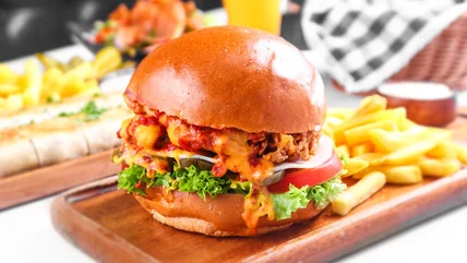 This saucy Korean fried chicken sandwich recipe has a dash of sweetness from the honey in the kimchi and sherry in the marinade, but overall, it's tangy, bold, and absolutely better with some MSG. Gochujang paste also offers a spicy, tanginess to the sandwich that becomes even more layered with some chicken bouillon. Sprinkle the seasoning into the marinade and stir well before dipping the fried chicken sandwich inside.