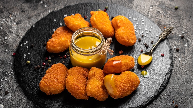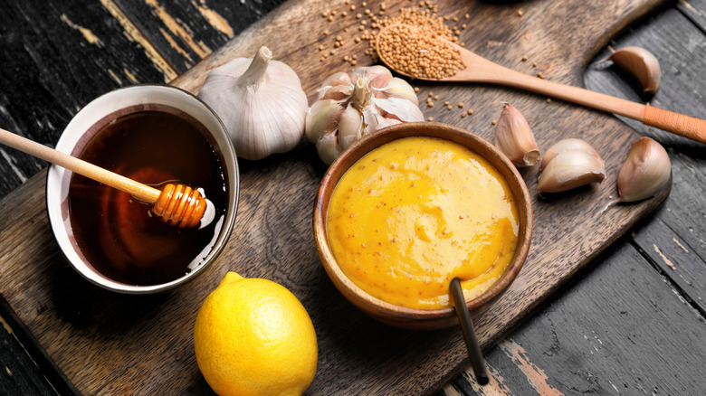 The flavor of honey mustard sauce is very rich. In terms of sweetness, it's easy for the pendulum to swing in either direction — a bit sweeter (made with more honey) or sharper (made with more mustard). Ratios often come from personal preference, but most are aiming for the golden middle. The sauce is very forgiving when you're adapting the recipe, giving you the option of lowering the mayo content or skipping it entirely and opting for sour cream or Greek yogurt as the creamy base instead. Despite the flexibility the sauce offers when made from scratch, you can also look to the many brands selling a version of it and find your favorite.
