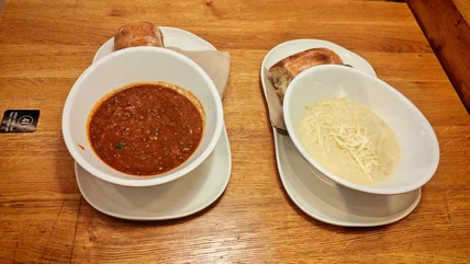 In terms of pricing, for the extra dollar and a bit, you're definitely better off getting a bowl and possibly sharing if that's an option. However, that's a common theme in the soup world. While soup is traditionally a cheap meal, just short of $9 doesn't feel excessive in this case. You can spend that at McDonalds, Wendy's, Burger King, etc., and you'll get something far less filling and flavorful. Looking at the ingredients list, you should definitely not make Panera your only food source, but it's definitely better for you than many of the alternatives. This is one of the best dishes I've had from what could fairly be described as a "fast food" place. If I was served either soup in a mid-range, well-reviewed restaurant, I wouldn't be disappointed in the slightest.