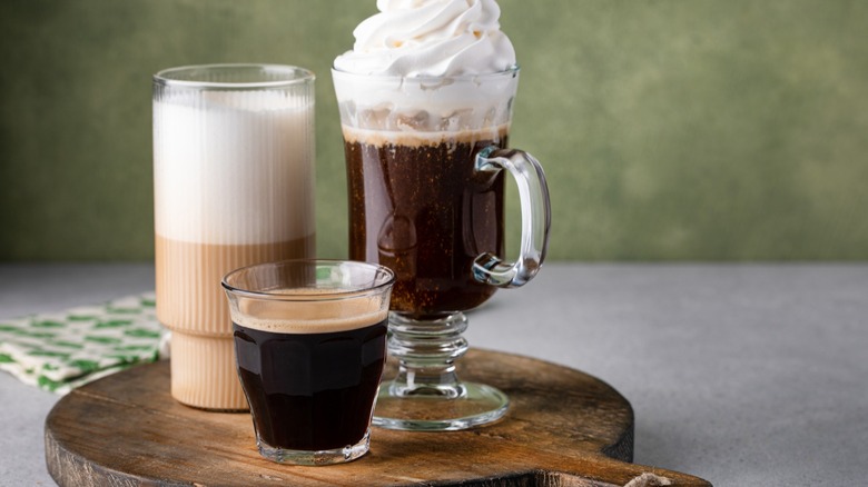 An easy way to level up your coffee cocktail or create your own version is by making your own whipped cream instead of using the canned stuff. Tasting Table has tested just about every way to make whipped cream, so take it from us — we know a thing or two about how to make it from scratch. If you're looking to add some fun flavors to your cocktail, this is a great way to experiment. You can whip up your cream with additional liqueur, or perhaps you want to add a bit of honey to make it sweeter; either way, it is so easy to customize this drink to your preferred flavor profile. Plus, if it's around a holiday, you can always add a little food coloring to the cream. As a bonus, both drinks can also be served cold by swapping out the hot coffee for iced coffee or cold brew!