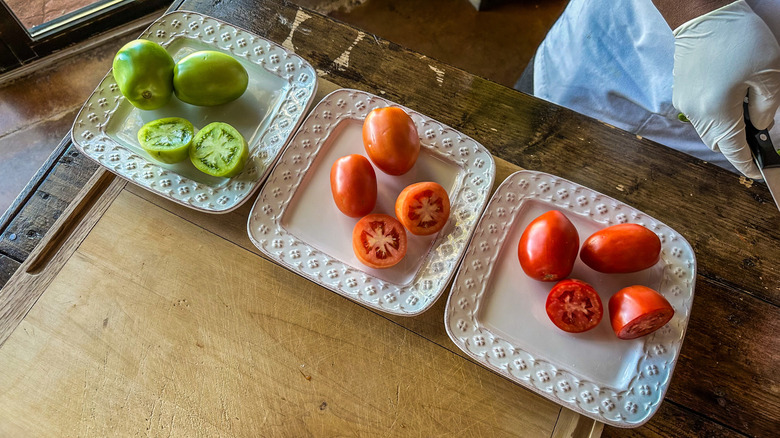 However, unlike other fruits and vegetables, those early and midway ripeness stages aren't prohibitive when it comes to partaking in this tasty vine-ripened treat. In fact, an early-stage tomato can be just as useful as a fully ripened late-stage tomato, and depending on what you're making and how you're making it, using a tomato that's only partway through its ripening cycle may end up working to your advantage.