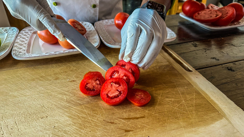 Despite not being at full ripeness, a slightly firm and flavorful breaker tomato can be put to good use in a variety of recipes. Start with the world's most perfect sandwich, the BLT, for instance; the firmness and slight acidity of the breaker tomato make it ideal to stand up with a few slices of thin and crispy strips of bacon. Rather than have each bite be a drippy, juicy mess, the breakers hold their shape for a uniform, well-balanced bite each time. Additionally, breakers are ideal for use in a salad like a panzanella, which benefits from just a bit of moisture from the tomatoes and olive oil to soak into the crusty bread.