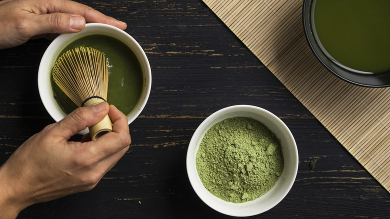 A traditional bamboo whisk, known as a chasen, is the best tool to get a perfect suspension of matcha in water, and the easiest way to achieve that satisfying layer of foam on top. If you don't have a chasen, you can use your handy milk frother to make matcha, which comes close to replicating the very specific whisking action of the more traditional tool. A standard wire whisk or even a fork will work in a pinch, but they're much more likely to leave lumps behind, so if you plan to make matcha part of your morning routine, it's definitely worth investing in the real deal.