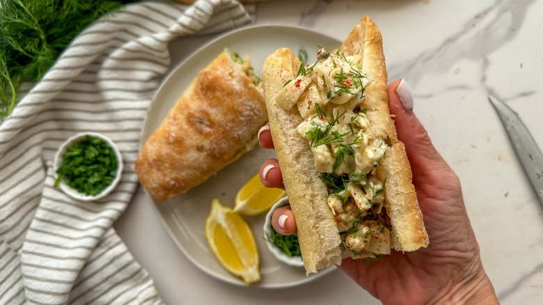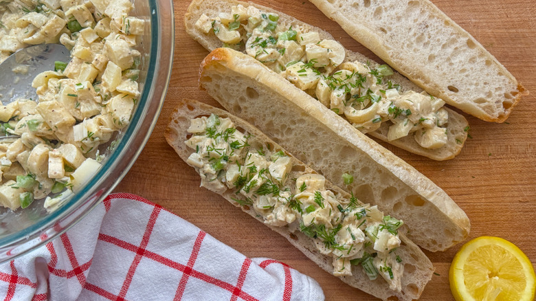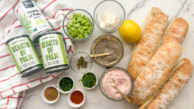 To really bring out the taste of sea, you'll need Old Bay seasoning and capers along with vegan mayonnaise, lemon juice, sriracha, salt, and pepper. Some paprika is a nice touch for an optional topping. Then pick out your favorite sub-style rolls and you're good to go.