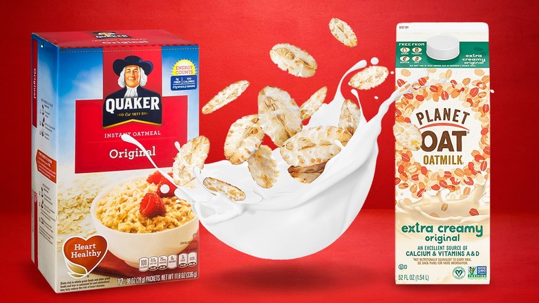Making homemade oat milk is easier to do than you might expect, and it may be beneficial if you use it on a daily basis and want to cut your budget some slack. That said, you should know that you can't use just any kind of oat when making homemade oat milk. Of the three main types commonly found on shelves — steel-cut oats, rolled oats (or old-fashioned oats), and quick-cooking oats or instant oats — it is imperative that you do not use instant oats to make oat milk. Quick-cooking oats are designed to cook faster, as the name suggests, which is achieved by making them thinner and by par-cooking them at length before packaging. This makes them able to absorb liquids more quickly–and therein lies the problem: Quick-cooking oats (and instant oats) absorb water so quickly that they tend to oversoak in no time, causing that dreaded oat milk slime.