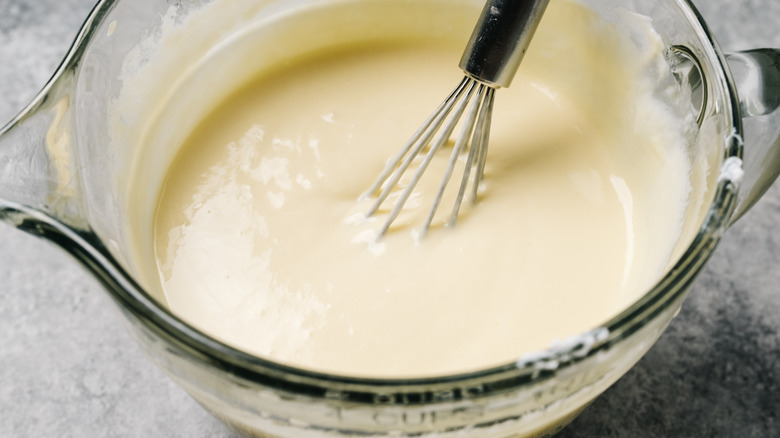 But that doesn't mean it's infallible. While many people know that mixing milk and lemon can easily cause curdling, not everyone is aware that oat milk can curdle, too, especially when it is added to a very hot substance that is more acidic, like tea or coffee. This happens because applying heat to oat milk causes its proteins to break down and separate, which is where the curdling comes in. Avoiding this scourge can be achieved with a simple extra step: Be sure to heat your oat milk to the same temperature as the other ingredient you want to mix it with. If that can't be achieved, try to add heated-up oat milk to a cooler liquid while whisking constantly — this will give the two liquids time to reach a similar temperature in the same amount of time. Alternatively, you can allow your coffee to cool before pouring in the oat milk for your coffee layer cake.