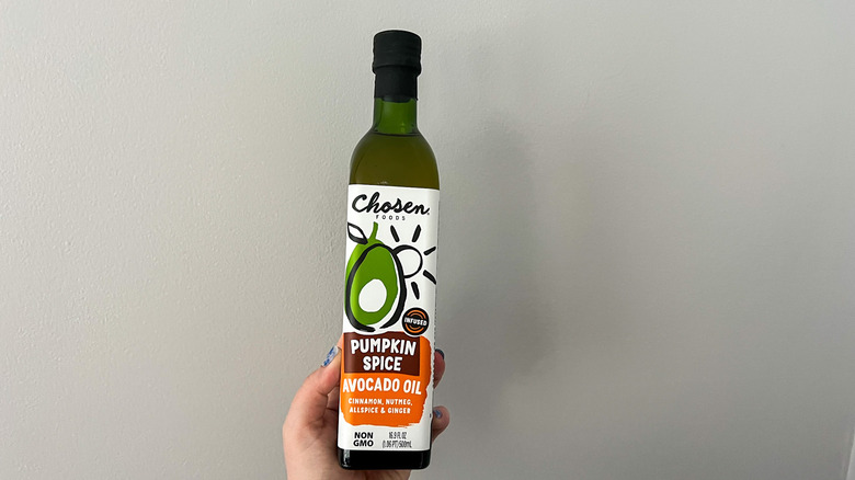 New for 2024, Chosen Foods has debuted a bottle of its signature avocado oil infused with a blend of cinnamon, ginger, nutmeg, and allspice. Before you roll your eyes at the thought of a pumpkin spice avocado oil, imagine the culinary possibilities. Avocado oil is typically a neutral oil, making it ideal for frying, roasting, and even baking. Now, envision all of your favorite fall recipes with the flavors turned up to 11 thanks to an oil packed with all the best seasonal spices. Try using Chosen Foods Pumpkin Spice Avocado Oil for roasting butternut squash, as the fat in pumpkin muffins, or even for tossing with sweet potato fries before air frying. Order a bottle of this limited-edition avocado oil on Chosen Foods' website before it sells out.