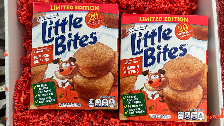 For a pumpkin spice treat on the go, Entenmann's Little Bites Pumpkin Muffins are hard to beat. Soft, moist, and satisfying, these mini-muffins pack all the cozy fall flavors you love — cinnamon, nutmeg, and a hint of pumpkin sweetness — into a bite-sized package. The texture is light and fluffy, with just the right amount of subtle spice to satisfy your pumpkin craving. Individual, pre-packed portions make it easy to grab for a quick breakfast or afternoon snack. Pick up a box at Kroger, Safeway, or H-E-B for around $2.89.