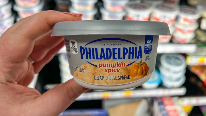 A perennial fall favorite, Philadelphia Pumpkin Spice Cream Cheese has been a favorite of PSL lovers for over a decade, and for good reason. It's rich, creamy, and perfectly spreadable, blending the classic tang of cream cheese with warm cinnamon, nutmeg, and a hint of pumpkin. The flavor is indulgent but balanced, with just the right amount of spice to bring a fall festival to your taste buds. The smooth texture makes it ideal for spreading on bagels or as a base for an easy no-bake cheesecake. You can find Philadelphia Pumpkin Spice Cream Cheese at Kroger, H-E-B, Giant, and other regional retailers for around $4.49 per container.