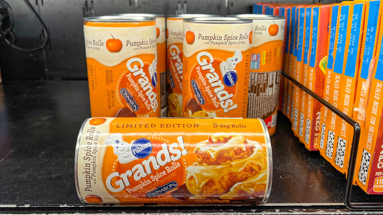 Picture this: Autumn leaves drifting in the wind of a chilly Sunday morning while the house fills with the smell of warm spices from a batch of pumpkin spice cinnamon rolls baking in the oven. The perfect companion to a classic fall aesthetic, Pillsbury Grands Pumpkin Spice Rolls hit all the seasonal high notes thanks to the addition of pumpkin and extra spices in its signature gooey canned cinnamon roll dough. A hearty dose of pumpkin spice-infused cream cheese frosting takes these break-and-bake pastries from basic to indulgent with minimal effort. Pick up a can at Target, Walmart, or Kroger for around $5 a pop.