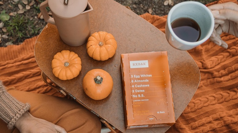 Those craving a pumpkin spice fix with a cleaner label should head for the energy bar aisle of their local neighborhood grocery store. Made with just a handful of ingredients, RX Bar's pumpkin spice protein bars pack a fall-flavored punch with pumpkin, cinnamon, and cloves added to a proprietary blend of egg whites, almonds, cashews, and dates for a chewy and satisfying seasonal on-the-go snack. Pick up a box from Target, Kroger, or Walmart, or add a box to your Amazon grocery order.