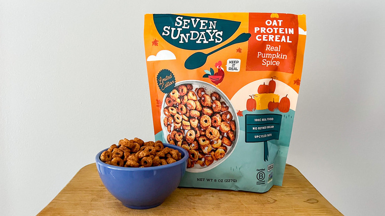 As simple as it sounds, Seven Sundays Real Pumpkin Spice Oat Protein Cereal gets its addictive fall flavor from, you guessed it, real pumpkin. By mixing pumpkin into its proprietary upcycled oat mixture (the byproduct of making oat milk) and tossing each crunchy ring in cinnamon and nutmeg, Seven Sundays produces a cereal that actually tastes like pumpkin spice — no artificial flavoring required. The limited-edition flavor is currently sold out online, but the brand plans to re-up its supply for October.