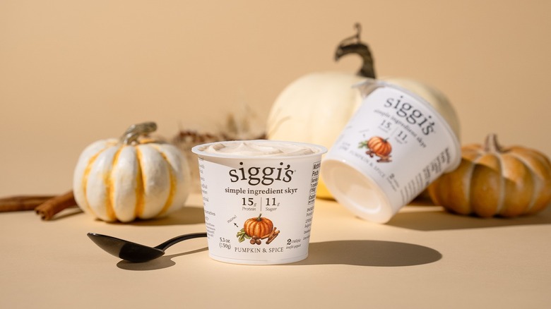 Siggi's popular Icelandic-style skyr yogurt gets a fall twist with its pumpkin and spice-infused limited-edition offering. The good-for-your-gut dairy product embraces warm seasonal spices like cinnamon and nutmeg along with creamy pumpkin puree and a dash of vanilla for a sweet and comforting autumnal treat. As an added bonus, Siggi's Pumpkin & Spice Skyr packs in 15 grams of protein per serving, allowing you to fuel up for your fall activities without sacrificing on flavor. Pick up a carton of this fall-flavored treat for around $1.97 at Whole Foods.