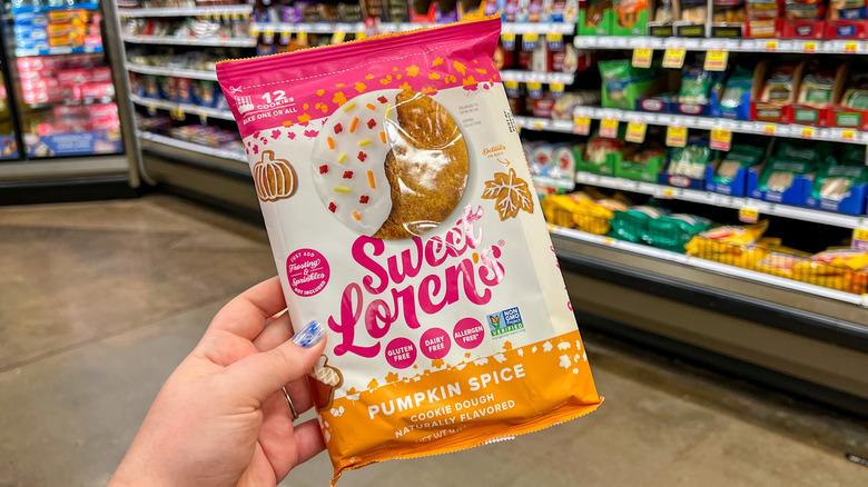 Craving the comfort of a homemade fall-flavored baked good but don't feel like cleaning up? Enter Sweet Loren's pumpkin spice pre-cut cookies. This low-effort dessert delivers a delightfully spicy cookie hot from the oven with subtle notes of pumpkin that come through as the cookies cool. As an added bonus, Sweet Loren's cookie dough is vegan and gluten-free, so not only are these safe to share with kids and coworkers, but you can also snack on the egg-free dough balls without fear of foodborne illness. Pick up a pack at national retailers like Kroger and Target for around $5.99 to $6.99.