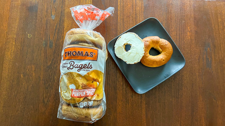 Soft and spongy Thomas' bagels get an autumnal makeover with the return of pumpkin spice bagels. Ideal for those on the fence about pumpkin spice flavors, Thomas' Pumpkin Spice Bagels are very mild on the scale of pumpkin-like to punch you in the face. Pumpkin purée gives the bagels a squash-forward flavor, while spices like cinnamon and nutmeg linger in the background just to lift the pumpkin notes to prominence on your taste buds. Top with pumpkin spice-flavored cream cheese for an extra dose of fall flair or use plain schmear to keep things simple.
