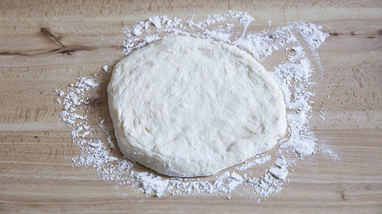 - Place the ball of dough on a floured work surface and sprinkle a little flour on top.