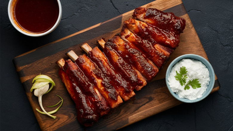 So, while you're passing up on the beans at your local joint, what should you order? Well, the menu item you should never skip at a barbecue restaurant is any type of local specialty. This is where you see the most diversity; just as Texan beans have a totally different flavor, meat varies across the U.S. states. North Carolina uses a cider vinegar marinade, while Memphis has a spiced dry rub with red sauce. And that's before you even consider variations across countries — Russia chars lemon-marinated meat, while in Brazil, chefs cook on specific types of wood.