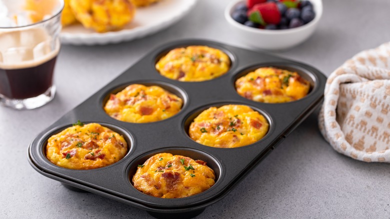 Egg bites and cups are all the rage these days, partly because it's an easy way to put a spin on boring eggs and ingredients like cheese or peppers for breakfast. You might order them at your local coffee shop, but egg cups are rather easy to make at home. Even if you use muffin liners to bake egg bites, there's a secret ingredient that will elevate the breakfast or snack with flavor and texture. It's all about the prosciutto, so forget about the bacon and sausage.