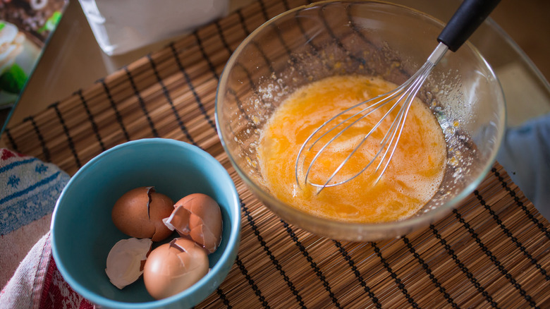 You can also use Italian or a soy sauce-based dressing. Whatever you choose, just don't add more than a tablespoon per two eggs to avoid a drippy and watery scramble. Simply whisk it right into the uncooked eggs, and proceed as usual by pouring it into a hot pan and stirring.