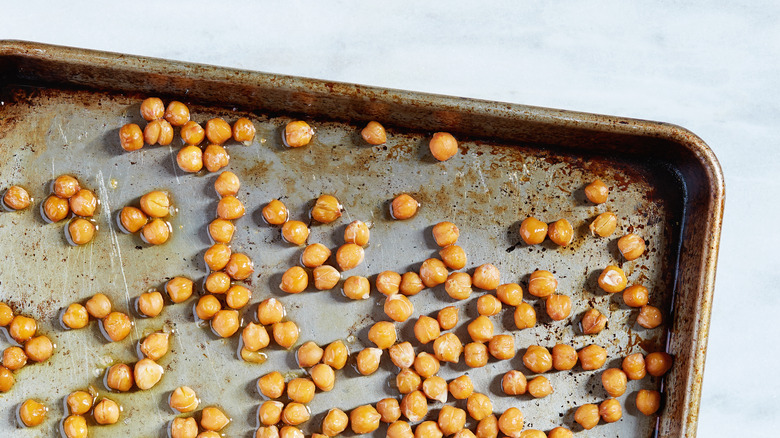 Who doesn't love a salty, crunchy snack? If you're sick and tired of potato chips or are looking for a more nutritious alternative, look no further than roasted chickpeas. They are loaded with protein, fiber, and iron, making for a healthy snack. Beyond snacking, they can be added to salads, grain bowls, and pretty much any meal that needs a savory crunch. Air-fried chickpeas are easy to make, but you can also roast them in your oven.