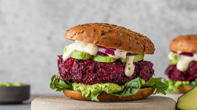 Veggie burgers are all the rage. And we aren't talking about Impossible meat or Beyond Burgers. These are good old-fashioned burgers made from fresh vegetables, grains, nuts, and spices. If you haven't mastered the art, then you're not alone. Folks struggle with getting the right consistency, choosing ingredients, and masting the flavorings. There are many ways to add flavor to vegetarian burgers, but one of the simplest ways is to include pre-made condiments and sauces like barbecue sauce or Worcestershire. The overlooked sauce that should make its way into your next batch of veggie burgers is salad dressings.