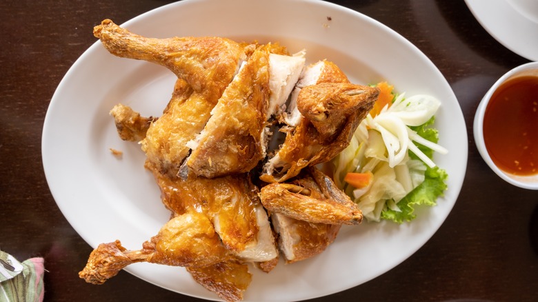 Fried chicken is one of those dishes we simply can never get enough of. Even after a few wings, thighs, and breasts, we're still hungry for any piece we can get. If you're the same, deep frying a whole chicken may be your best bet. While it seems like that won't have the same outcome compared to frying pieces of chicken, we spoke to a chef for the best tips on frying the bird.