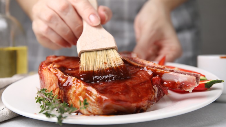 The unique tomato-vinegar flavor and watery thinness of Lexington sauce lends itself to various meats. The obvious choice is pulled pork, like to upgrade our easy pulled pork recipe, on its own or piled high on a sandwich with slaw. The acidity from the vinegar will cut through the smokiness of the pulled pork, while the sugars and ketchup will add layers of flavor, too. Pulled pork isn't the only dish that will benefit from Lexington Dip, because it's often put on other smoked meats like brisket, chicken, and turkey, too. And while you're at it, here's everything else you need to know about North Carolina barbecue.